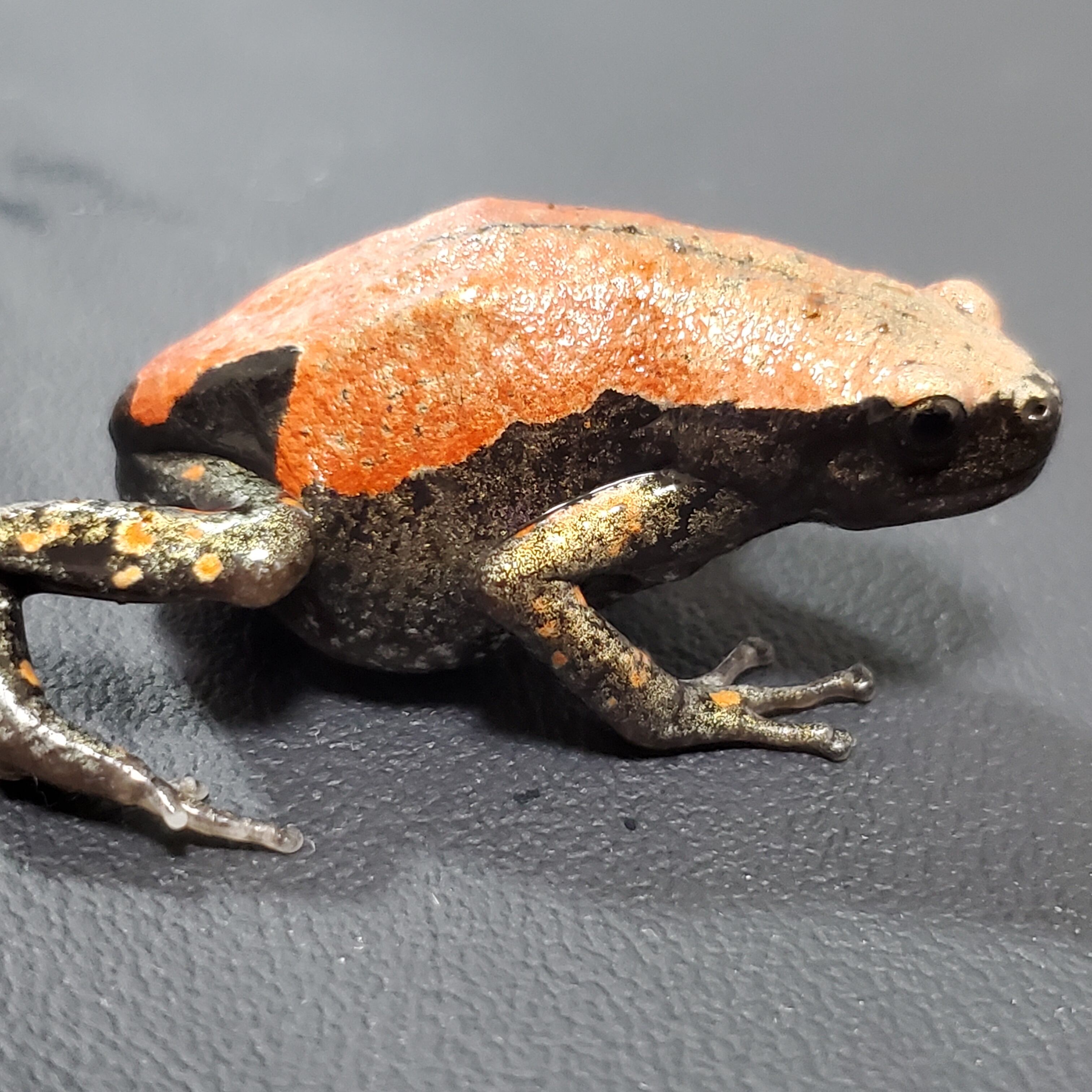 底材:現在パームマットを軽く絞めらせ、水入れの下に水苔を敷き、好きな場所に移動できるようにしております。シェルターの中に入っているのが好きな子です。