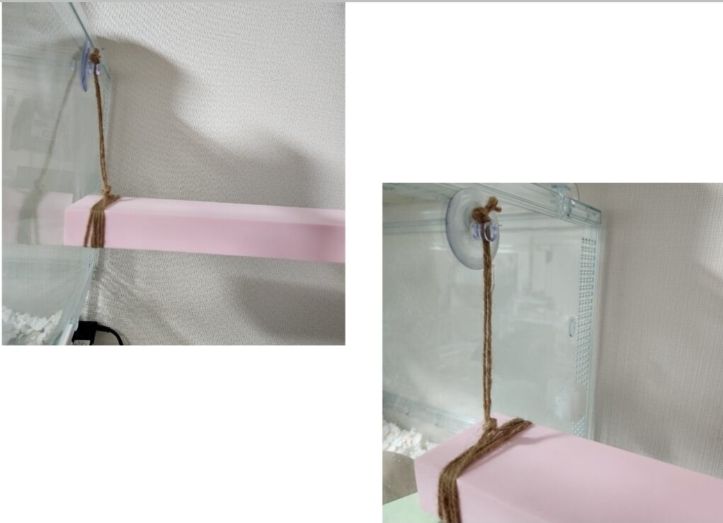短い場合や切り損じてしまっても麻紐と百均の穴空き吸盤で解決します